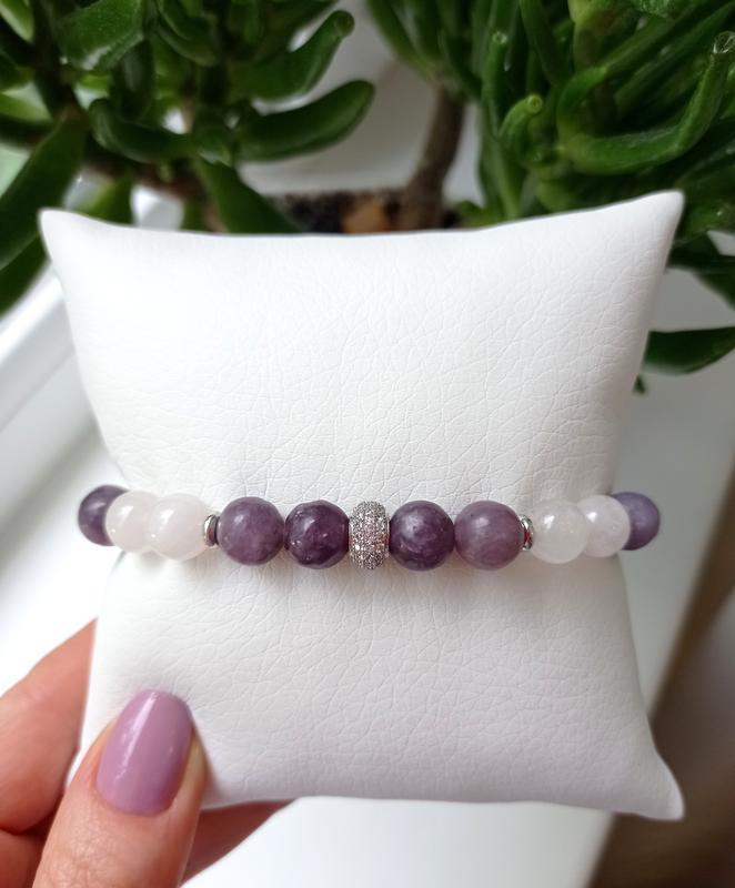 🔹Витончений браслет з натурального каменю лепидолит може стати не тільки прикрасою, але і допоможе уникнути осінньої хандри.☝️✨ Про властивості каменю читайте в описі. 🔹Розмір браслета на зап'ясті 16,5-17,5 див. Можливо зробити розмір браслета під Ваш запит. 🔹Діаметр намистин 8 мм. 🔹ЛЕПИДОЛИТ - знімає емоційне напруження, роздратування, прибирає тугу, усуває нервові зриви. Дуже корисний для спокійного та гармонійного стану психіки. Його спокійний колір заспокоює і заспокоює. 🔹Також, цей природний мінерал сприяє щасливому сімейному взаєморозумінню і спокійного побуті. Підвищує відчуття прихильності до домашнього вогнища. 🔹Лікує невралгічні захворювання, виліковує неврози. Прикраси з лепидолита робить позитивний вплив на кровоносні судини. ✨☝️✨💜 ---------------✨ Дивіться інші мої оголошення!✨----------