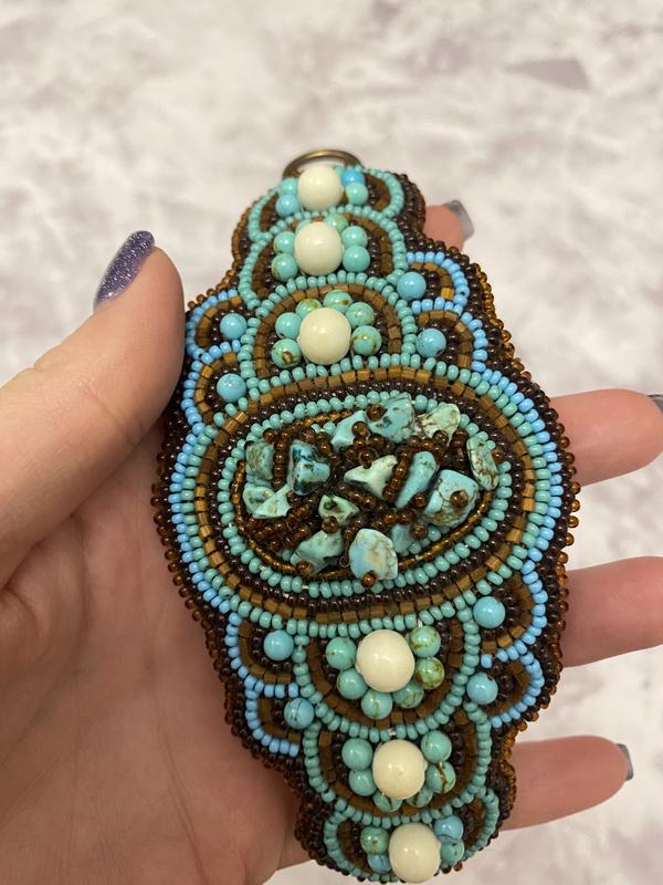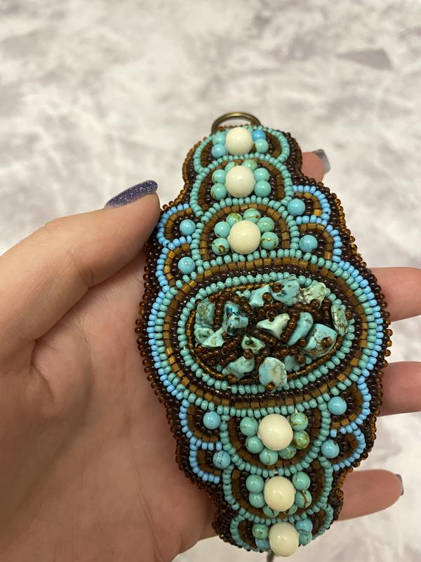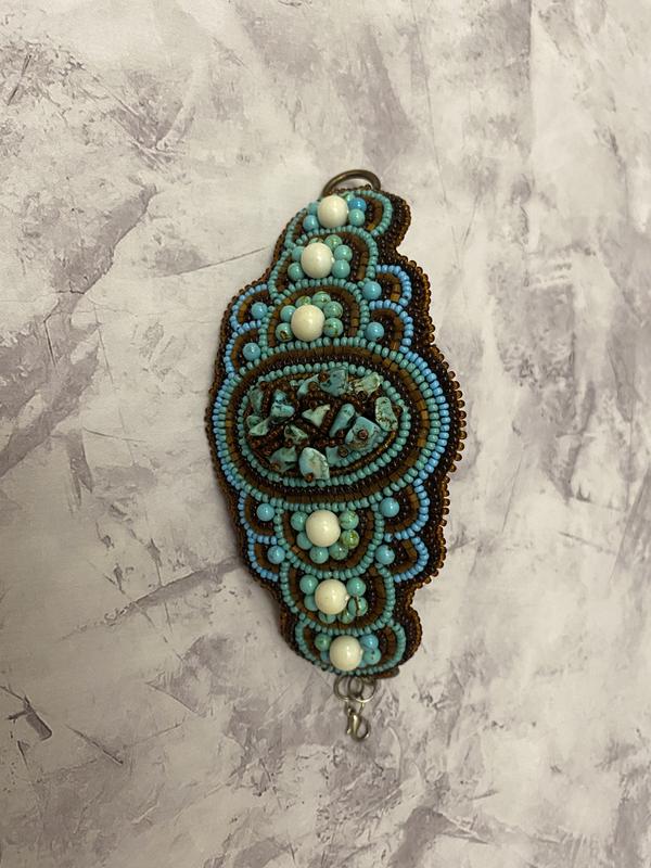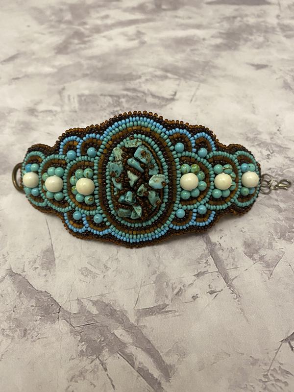 Широкий бірюзовий коричневий браслет з бісеру ручна робота з бірюзи бірюза бісер...