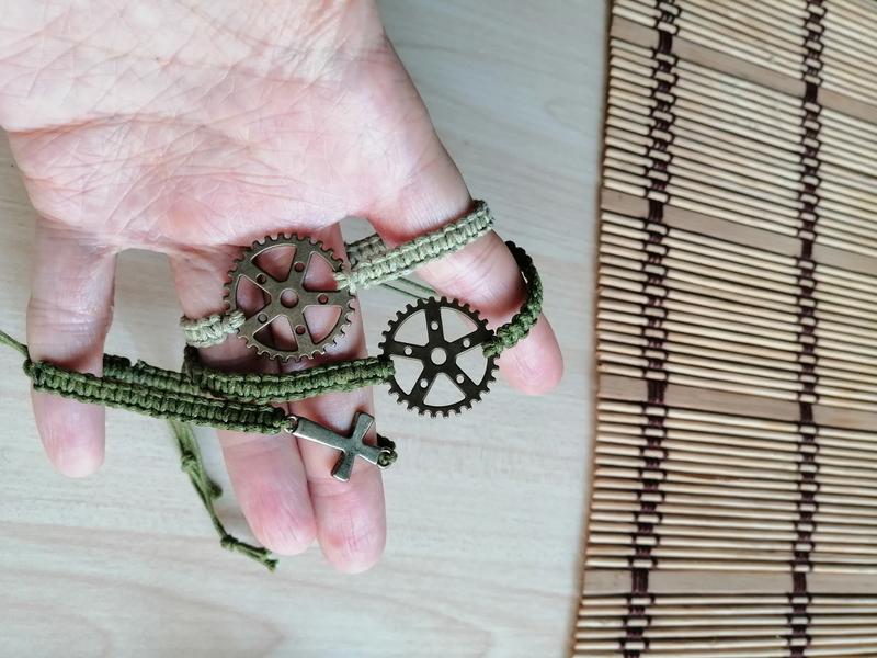 Шестерінки символізують нерозривний зв'язок людини і машини, і безмежний потенціал такого поєднання. Їх володарі підкреслюють силу духу, прихований потенціал, відкритість і творчість. Можливі варіанти з додаванням до шестерням проводів, переплетених з венами. Ціна за один. при покупці двох знижка русная робота на кожен браслет загадати бажання,инстурукция в комплекті