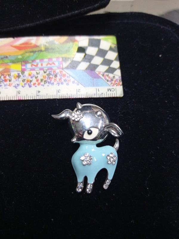брошка телятко..білий метал..емаль..дрібні камінці..можна дитині на шапочку..красива