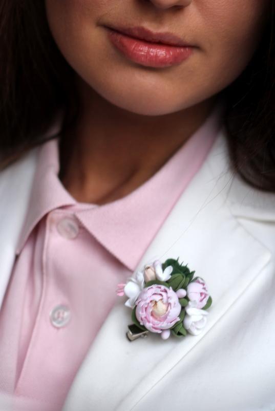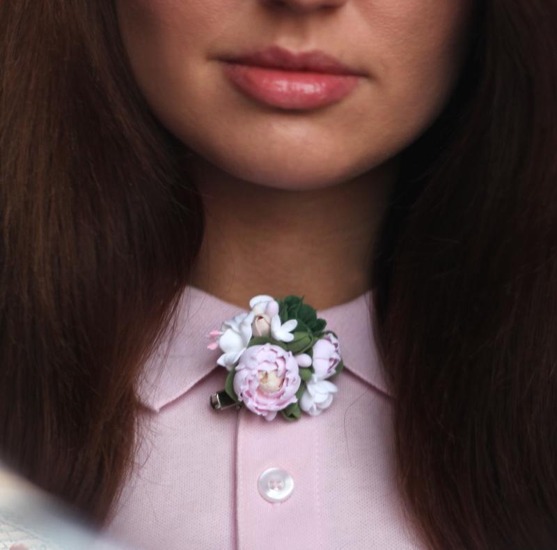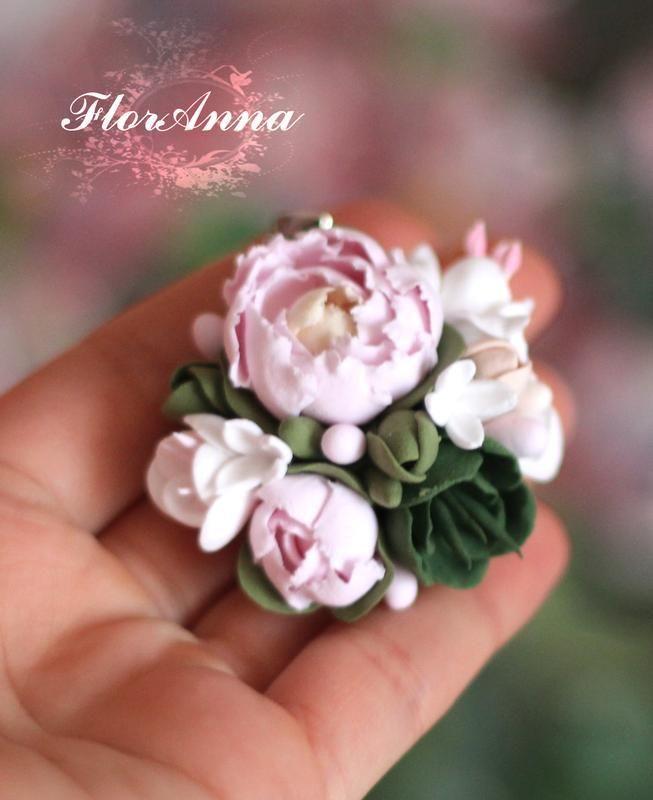 Чарівна шпилька/брошка з квітами з полімерної глини для незабутнього образу. Композиція складається з півоній, фрезій і трояндочок. розмір 5х5,см Таку брошку Ви не знайдете ніде. Ми ліпимо квіточки з японської полімерної глини decoclay. Кожна робота унікальна.