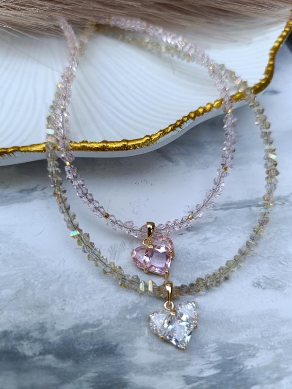 Ціна за один , при замовленні вказуйте колір Трендовий Чокер з підвіскою серце , є в різних кольорах . запитуйте 💕 довжина 36 см+ 5 см подовжуючий ланцюжок матеріал : чешське скло, японський бісер фурнітура: гіпоалергенний сплав ,покриття позолоти 18к, не темніє .