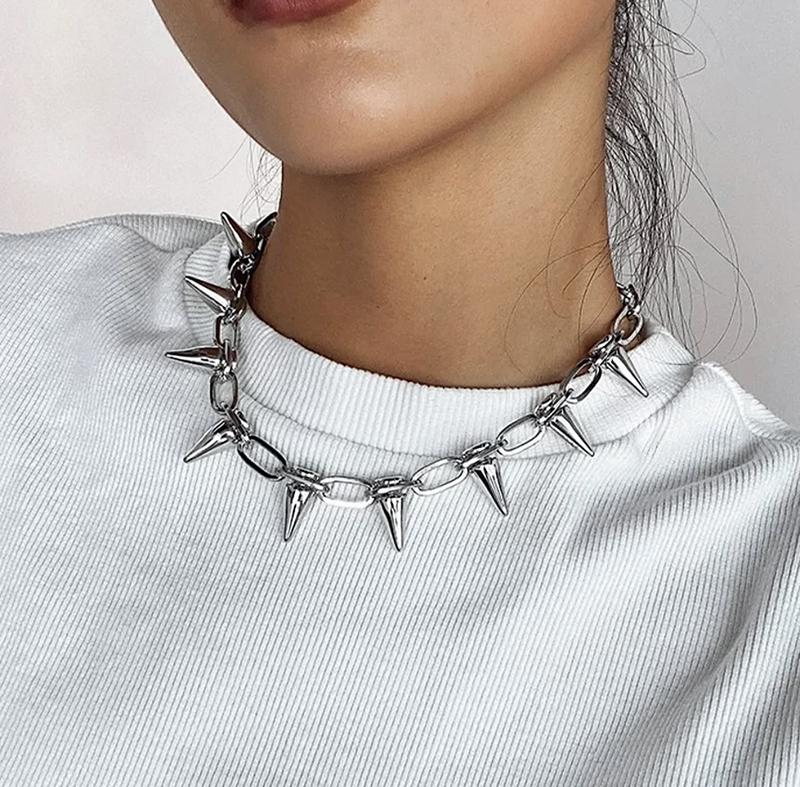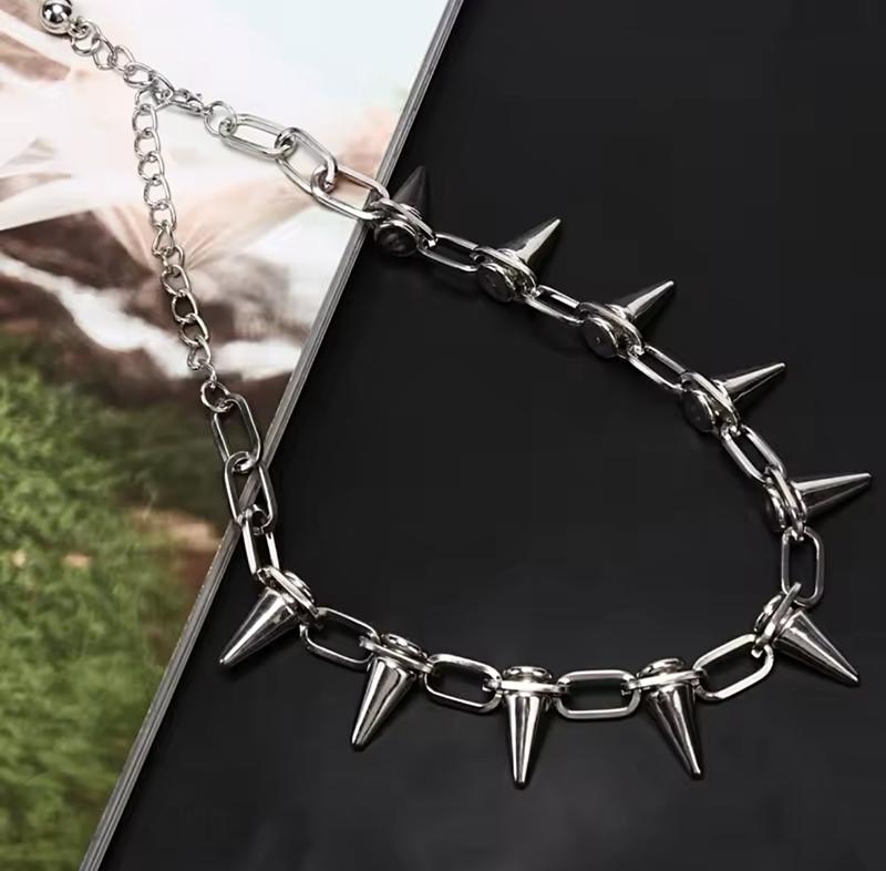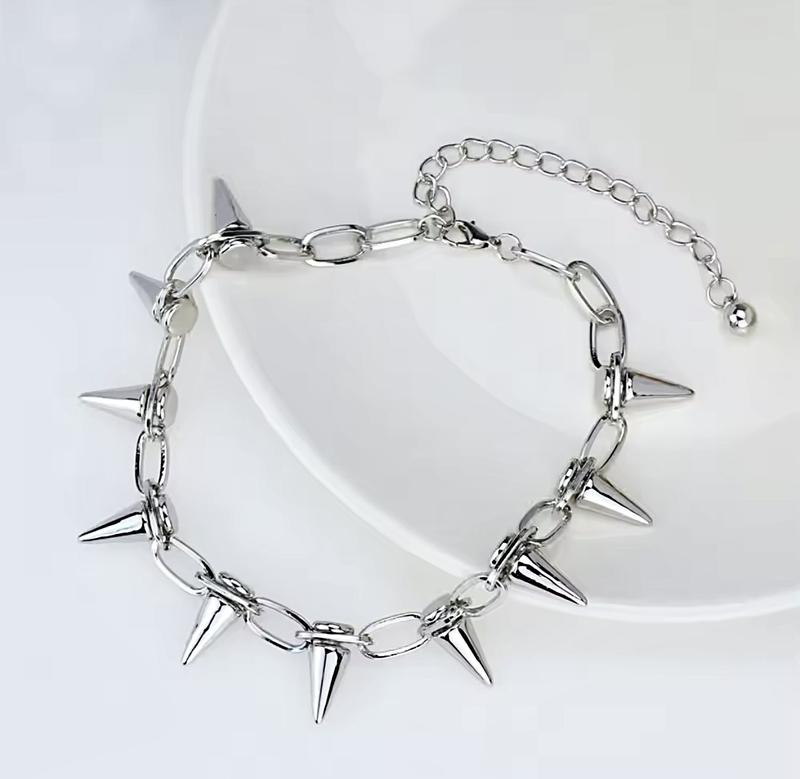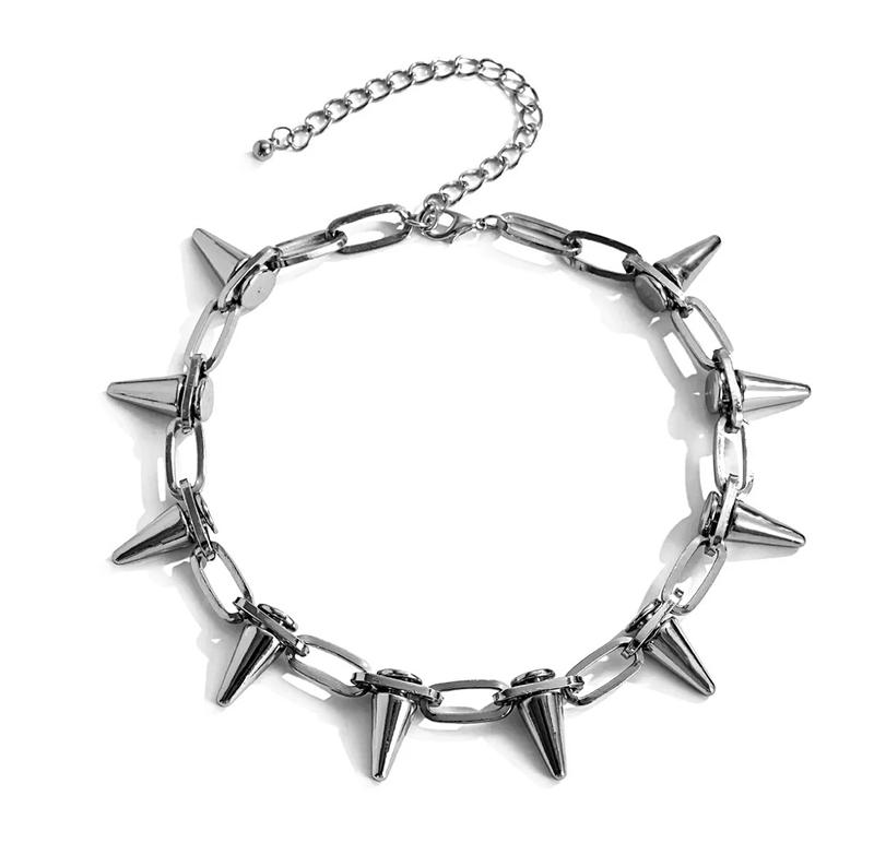 Довжина — 45 см.Ширина — 1 см.Висота шипа - 2,2 см.Розмір — Універсальний.Чокер - Ланцюжок - Браслет 3 в 1.Шипи Пластикові.Стать - Унісекс.Колір - Сріблястий.