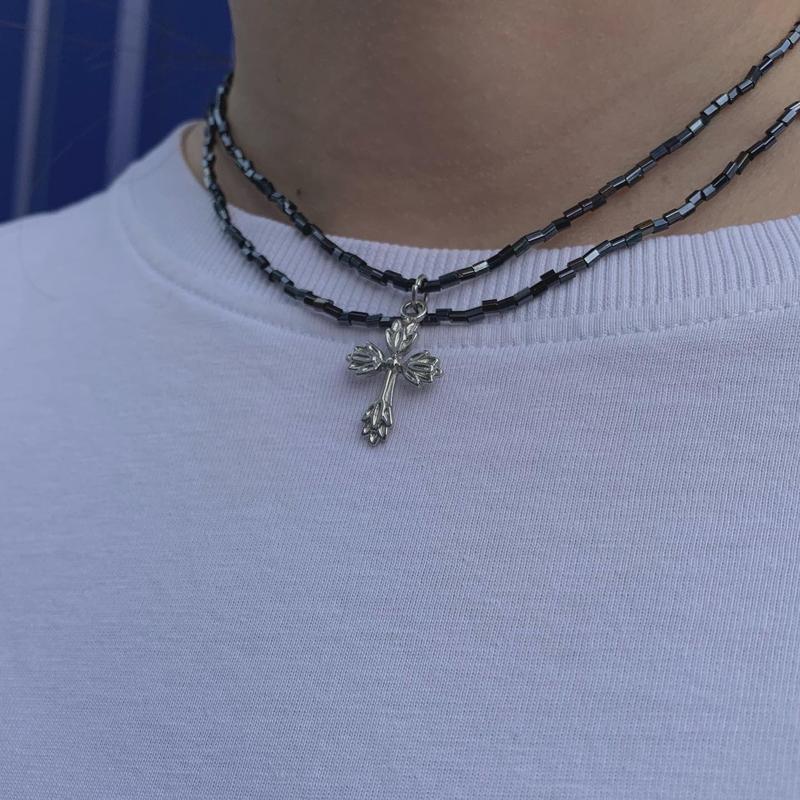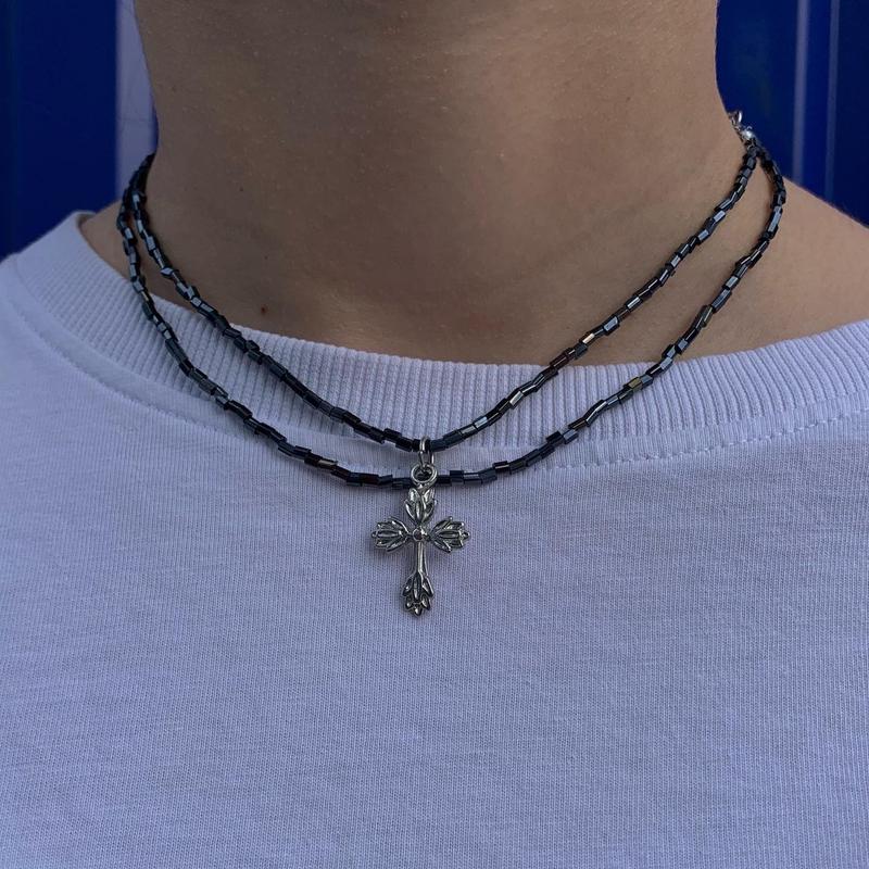 чокер з бісеру ,з підвіскою хрестик. Дуже гарно переливається🤩Також можете заглянути у наш інстаграм: ******💗