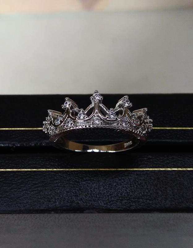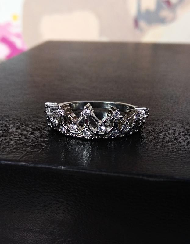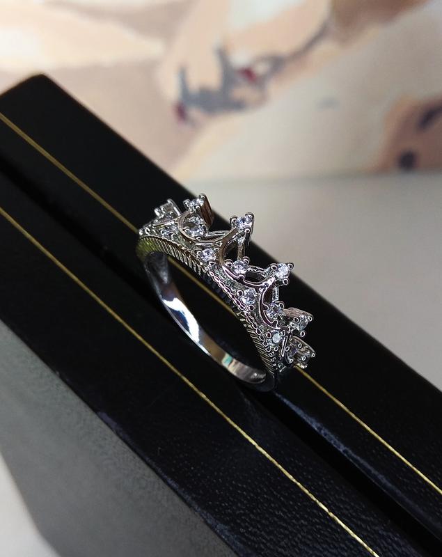 Жіноче кільце у формі корони, не ношене.Матеріал: Ювелірний сплав.Камінь: Фіаніт.Розмір: 19 мм.
