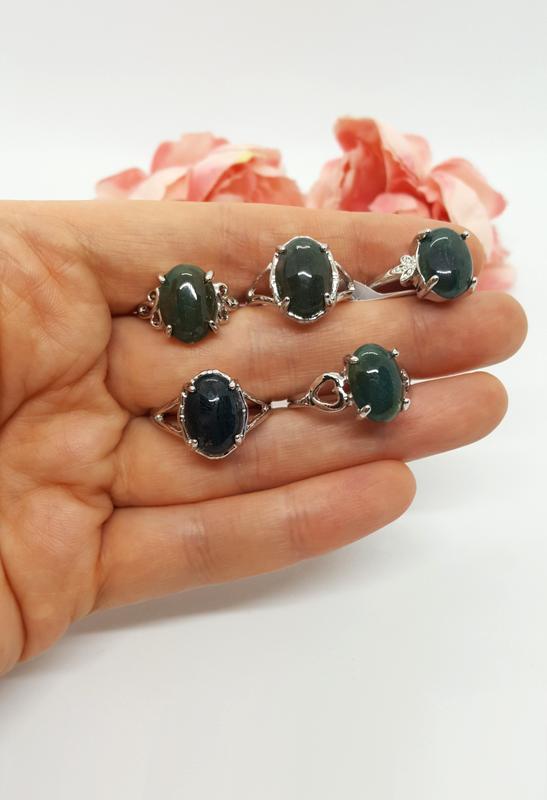 💍💚 Оригінальне кільце із вставкою з натурального мохового агату.