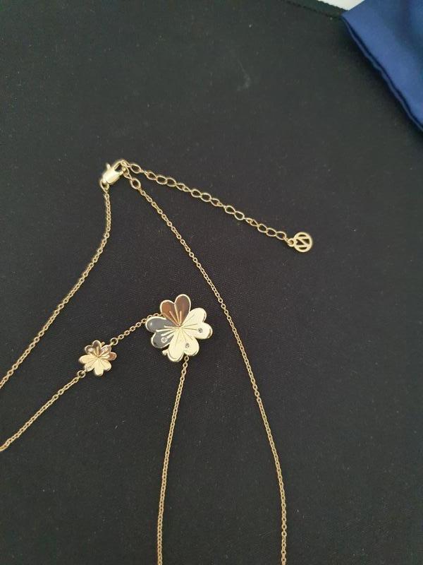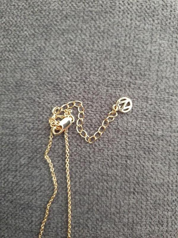 Материал: латунь, кубический цирконий, латунное покрытие. Длина колье: 52 + 6 см дополнительно. Диаметр подвесок: 1 и 1,7 см.