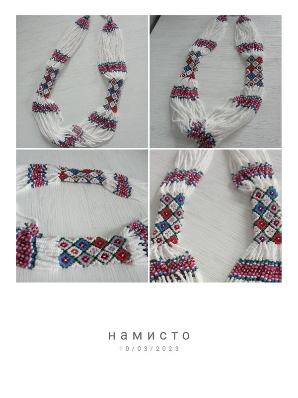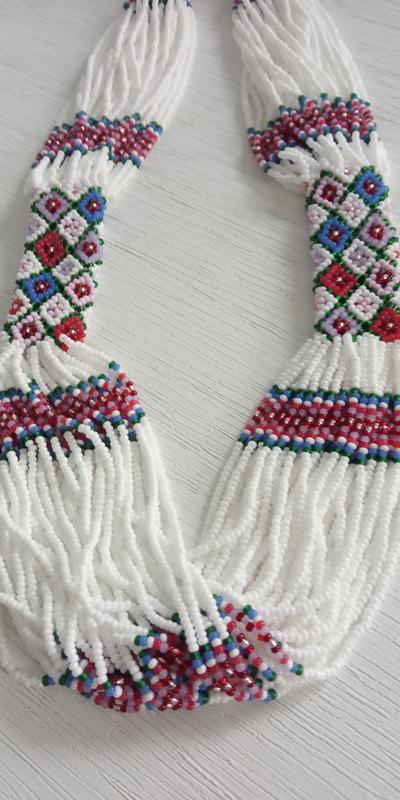 Ніжне барвисте намисто українське ручної роботи довжиною близько 60 см, шириною 2,3 см.