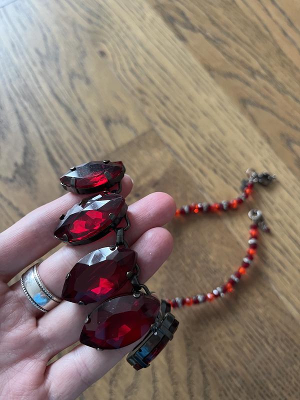 Розкішне кольє, намисто з великих намистин червоного і сірого кольору.
