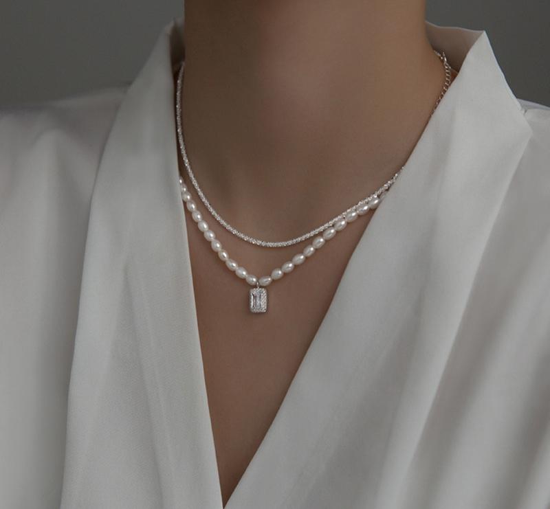 Багаті натуральні намисто з фіанітом і чокер зі срібла 925 проби, два короткі срібні ланцюжки Жемчуг