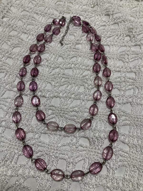 Винтажные бусы из люцита лавандового цвета двухрядные длина верхних 42см ,+6смнижних 50см бусины на пинах серебряного тона