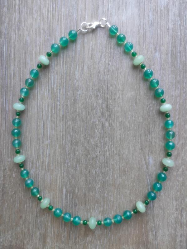Продам свіжий, незвичайний чокер з намистин натурального нефриту, хризопразу та преніту ювелірного огранювання. Розмір намистин нефриту - 4×8 і 4 мм, хризопразу - 6 мм, гранованого преніту - 2 мм відповідно. Нанизаний на ювелірний тросик, застібка – карабін. Виконаний у єдиному екземплярі. Довжина - 39 см, можна поставити подовжувальний ланцюжок на Ваше прохання або змінити розмір самої прикраси. З усіх питань пишіть - відповім.