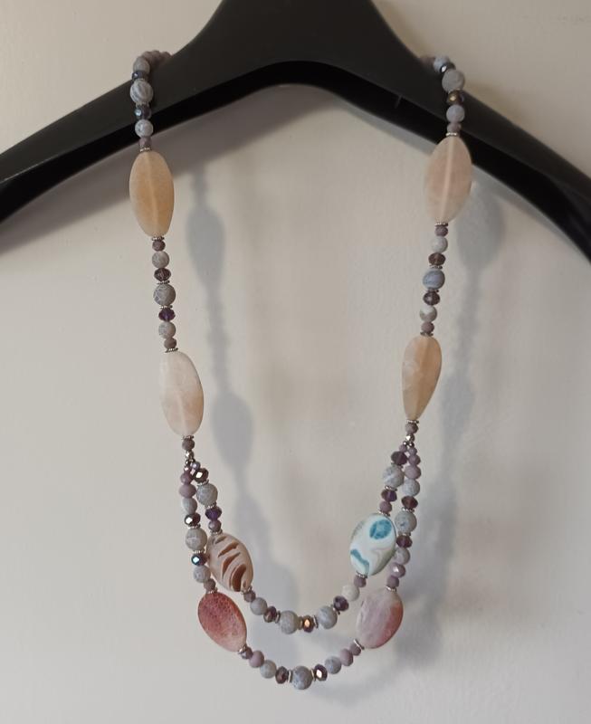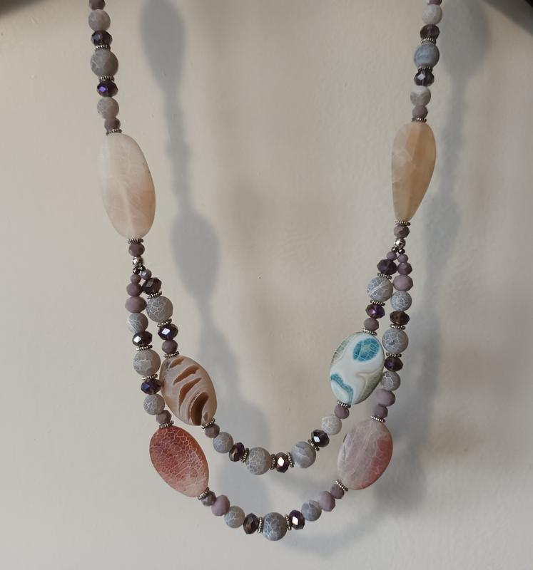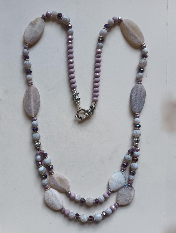 Натуральний агат: овал 4-3,5 х 1,5-2 см, овал 3 х 2 см, гладка кулька d10 мм і d8 мм та намистини чеський кришталь для яскравості, фурнітура кольору "срібло".