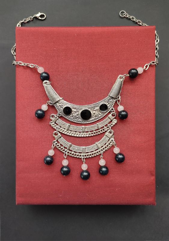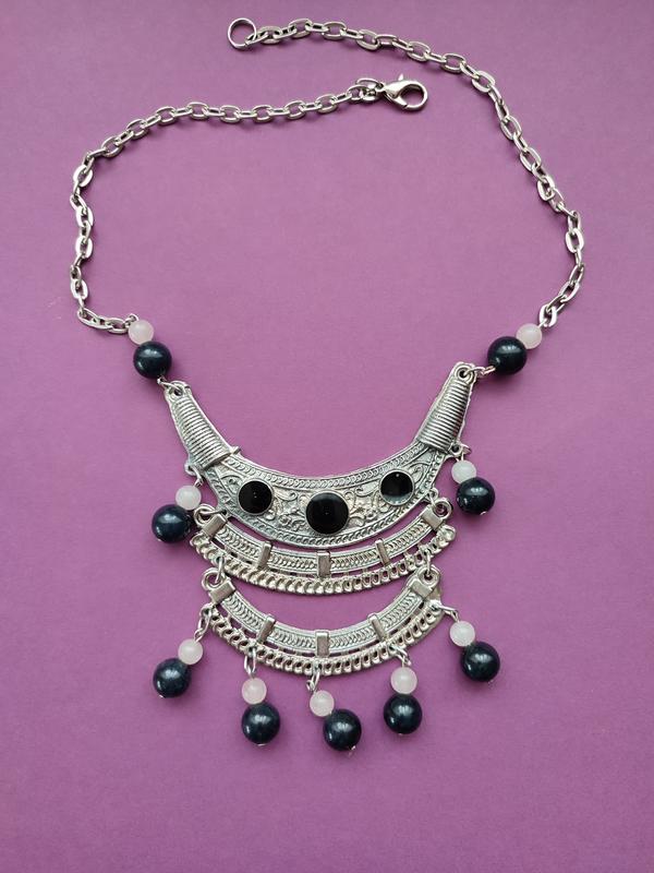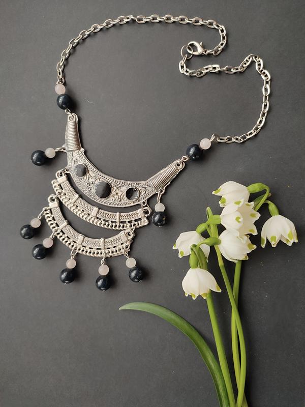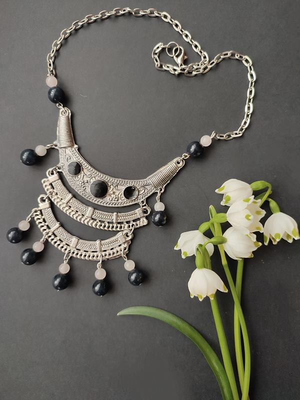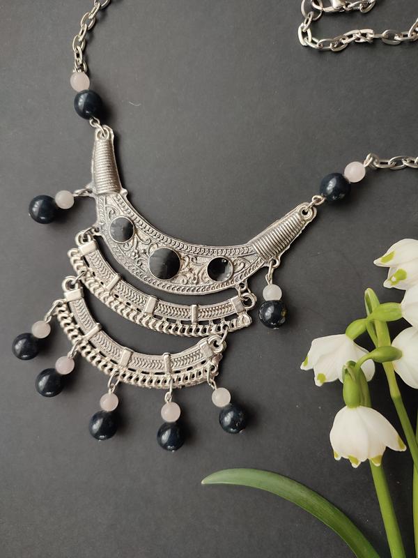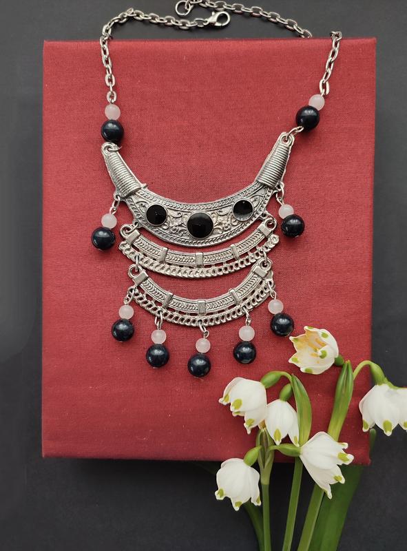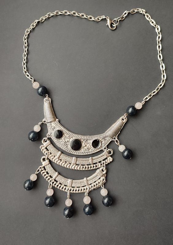 Довжина 45см, регулюється. Оригінальне вінтажне кольє з чорною емалью і натур. намистинами камінням .