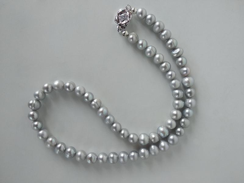 Намисто - чокер жіноче з сірих перлів Опис виробу: Натуральні, культивовані перлини Розмір намистин: 7мм на ювелірному тросі Фурнітура преміум класу Довжина виробу: 40см. Ручна робота
