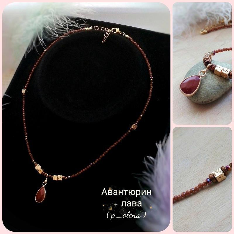 Авантюрин лава гематит підвіска кулон чокер колье коричневий лава камінь подарунок на шию