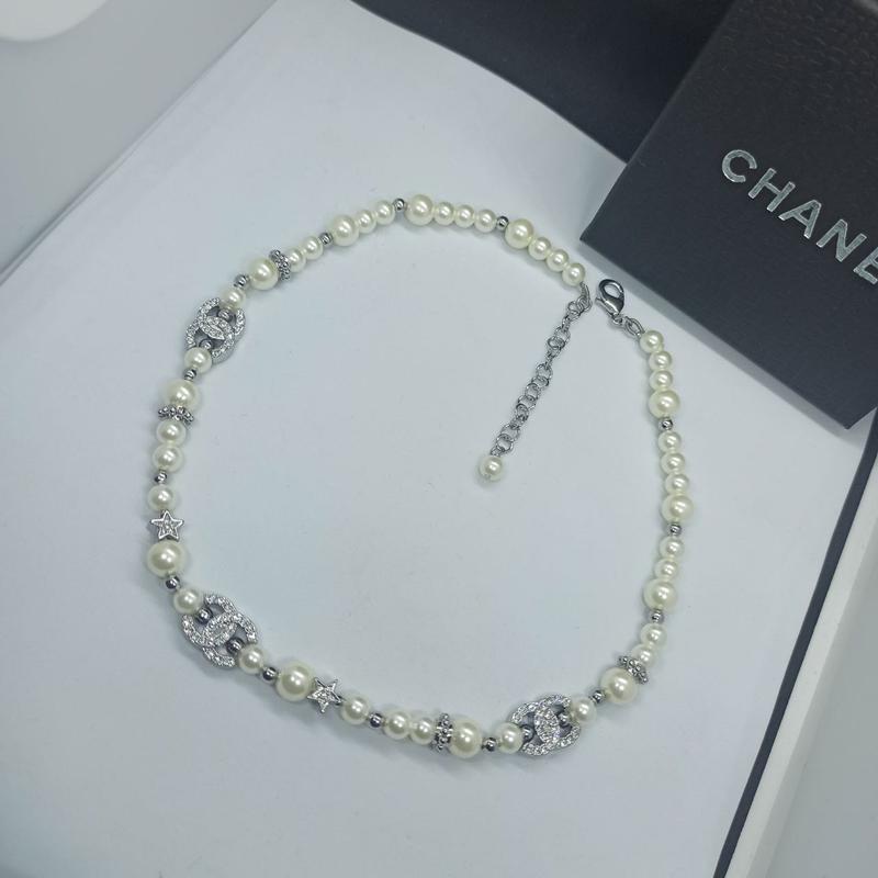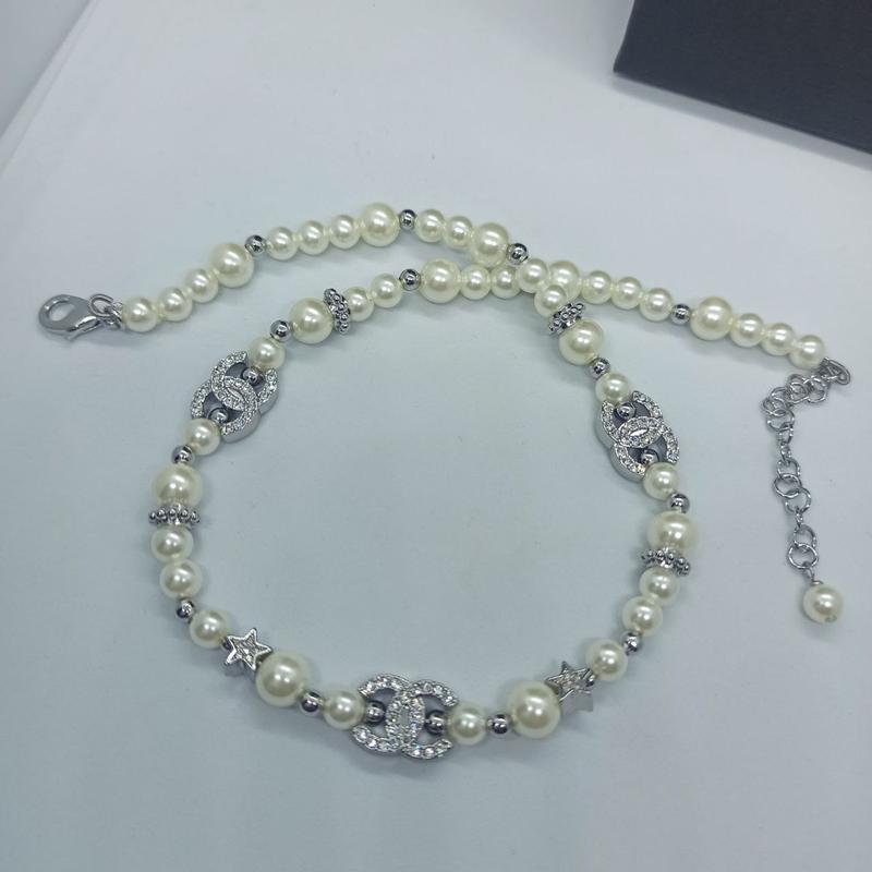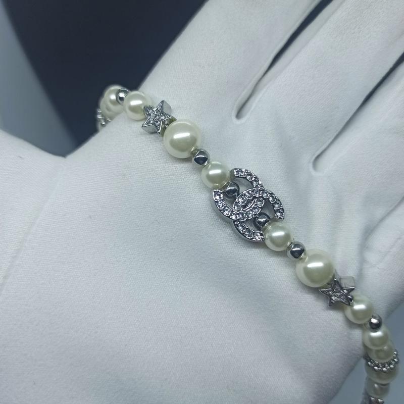 Чокер три Шанель сріблястий з перлинами топ
