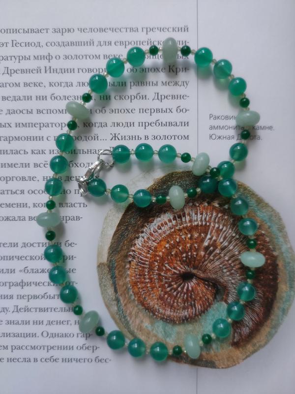 Продам свіжий, незвичайний чокер з намистин натурального нефриту, хризопразу та преніту ювелірного гранування. Розмір намистин нефриту - 4×8 і 4 мм, хризопразу - 6 мм, гранованого преніту - 2 мм відповідно. Нанизаний на ювелірний тросик, застібка – карабін. Виконаний у єдиному екземплярі. Довжина - 39 см, можна поставити подовжувальний ланцюжок на Ваше прохання або змінити розмір самої прикраси. З усіх питань пишіть - відповім.