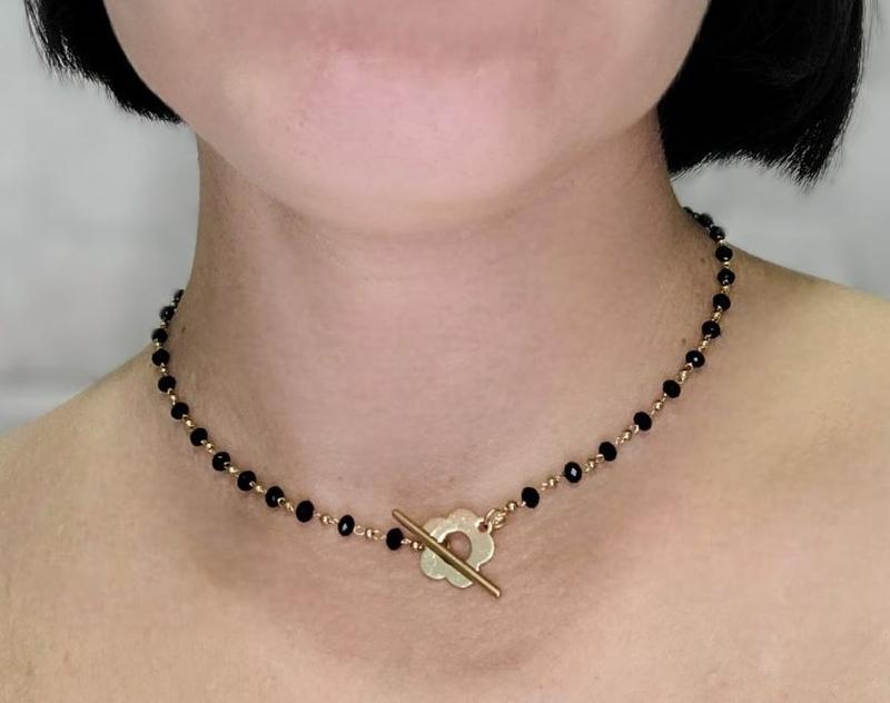 Кольє чокер на шию золотисте з чорними бусинами