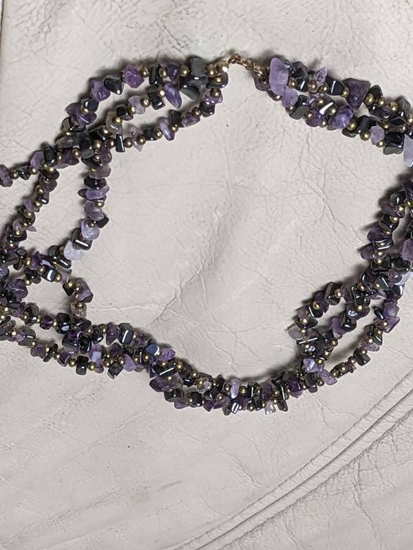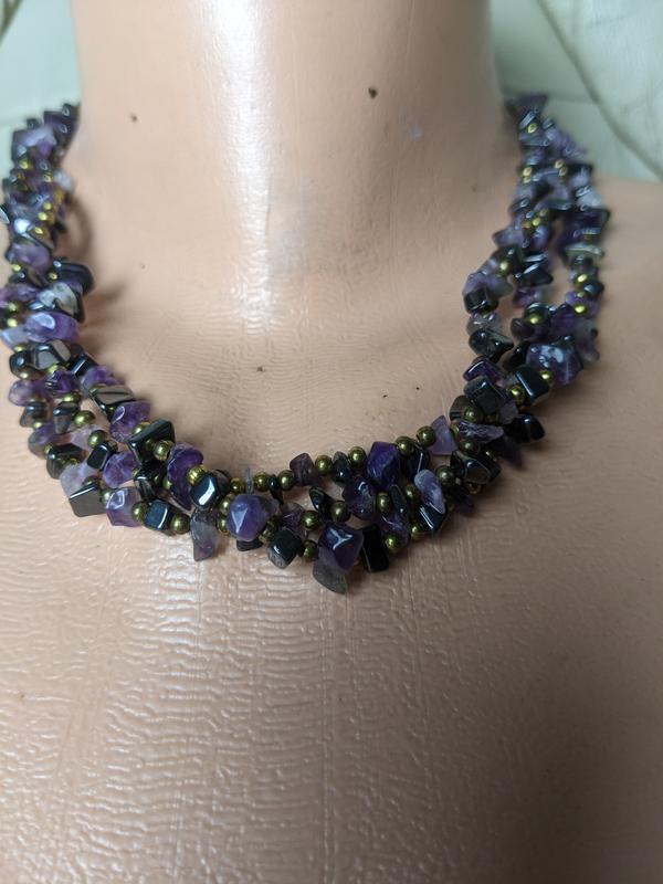 Красивезні буси з натурального каменю в ідеальному стані ❤️🔥Довжина кола -49 см.Колір - дуже красиве поєднання бузковий з чорним кольором та додавання золотої намистини додають шарму і виглядає дуже красиво та багато.💓💕🩷