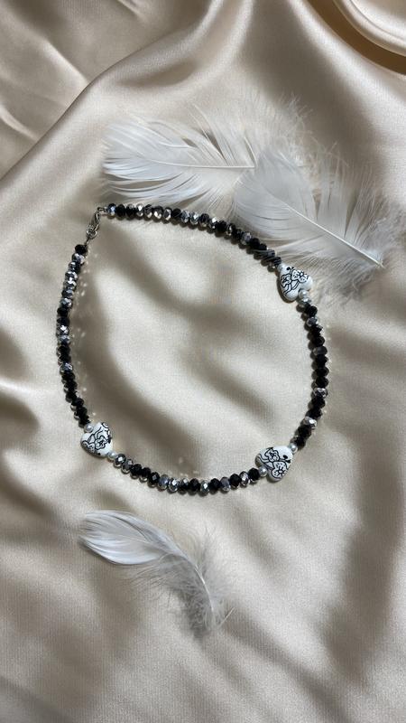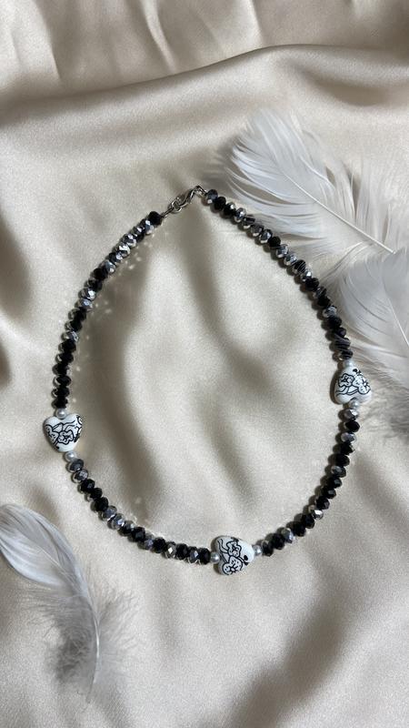 кольє чокер з мерехтливими бусинами та з керамічними сердечками