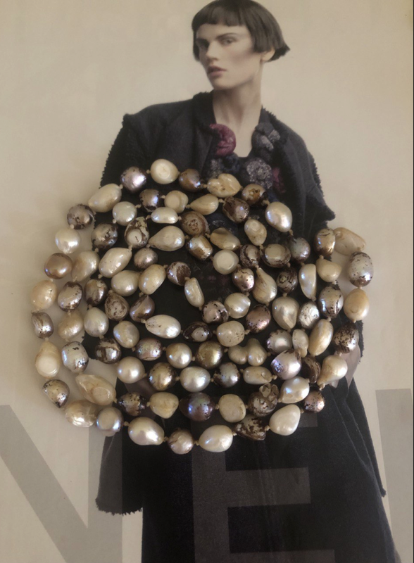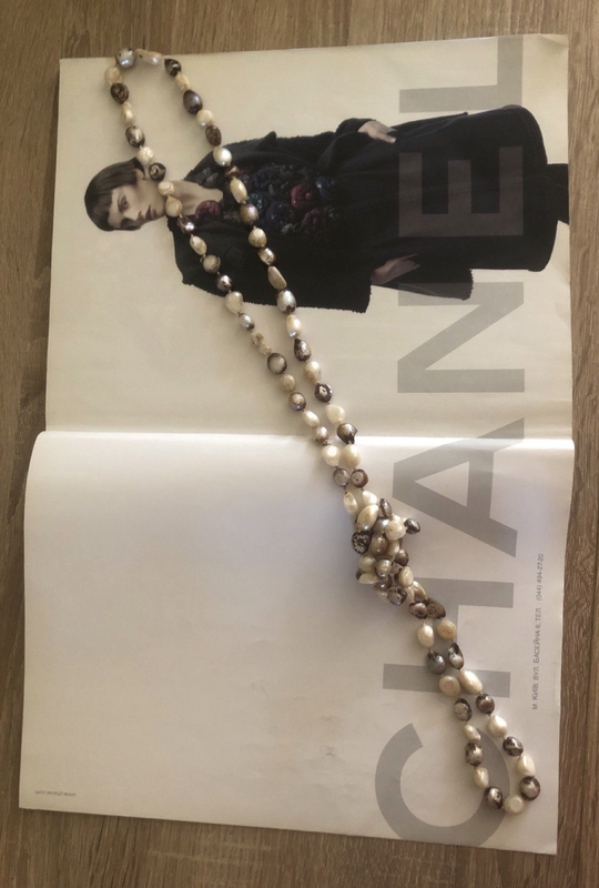 Благородне вінтажне натуральне намисто з морських перлів. Довге – 118 см, тому можна в 2 низки носити як намисто, або в 4 як браслет. Середній розмір перлин 1 см. Частина перлин ще має природну темнувату плівку, що створює додатковий шарм і вказує на автентичність матеріалу.