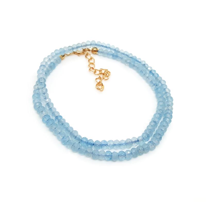 🩵✨Коротке кольє-буси чокер із натурального каменю аквамарин з граненими блискучими намистинами у формі ронделя. Огранювання намистин дуже красиве. Фурнітура золотистого кольору. Застібка - карабін, є регулювання довжини. 💥 Подивіться відео-огляд під фото в браузерної версії сайту. ------------------------------------------ ❗️🔷У наявності є чокери з інших натуральних каменів: обсидіан, аметист, тигрове око, яшма, лазурит та інші.❗️🔷 ------------------------------------------ Розмір: довжина 40 см + 5 см подовжуючий ланцюжок, діаметр намистин 3,5х3 мм. Склад: натуральний камінь аквамарин.