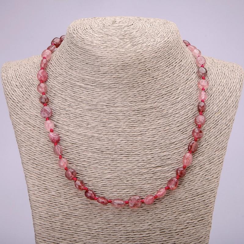 Бусы из натурального камня Клубничный Кварц галтовка d-7х9(+-)мм L-48см