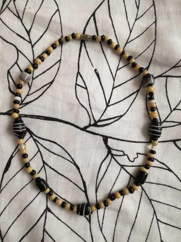 Тренд чокер, кольє, підвіска, буси, намисто, коралі, натуральний камінь (гематит), дерев'яні намистини, дерево, унісекс, чоловічий