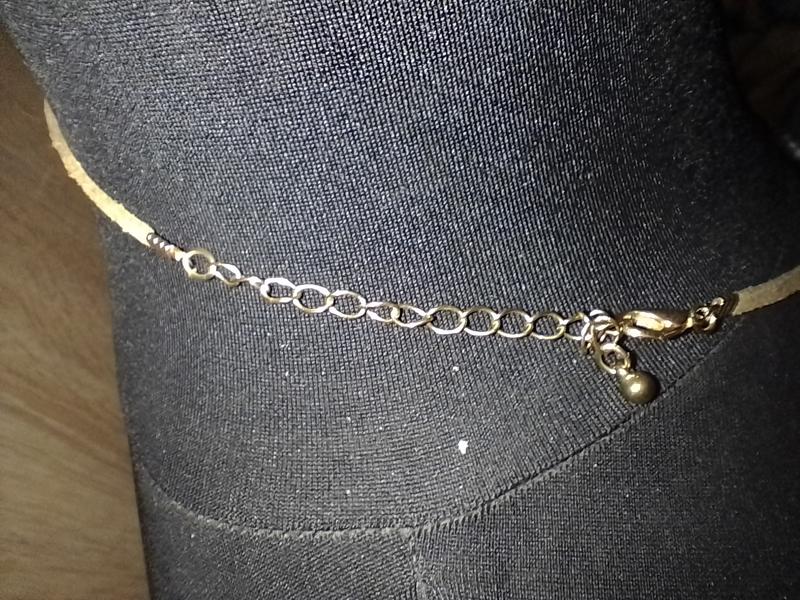 барвисте блискуче кольє дворядне з скляними намистинами підвіски ланцюжка на замшевої стрічці з застібкою довжина 42+7 см доп. ланцюжок