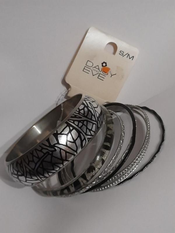 Новенький набір з восьми браслетів від DAISY and EVE Діаметр браслетів 7,5 см. На бірочці вказано розмір S/ М. ❗️Відправляємо після повної сплати на картку Приватбанку. ❗️Доставка Новою Укр поштою за кошти покупця. ❗️Повернення та обміну НЕМАЄ ❗️ *4162*