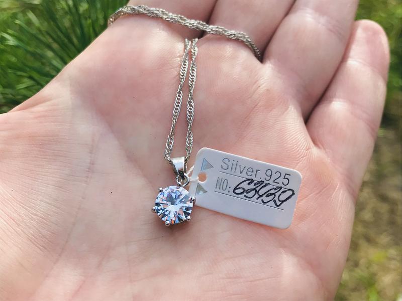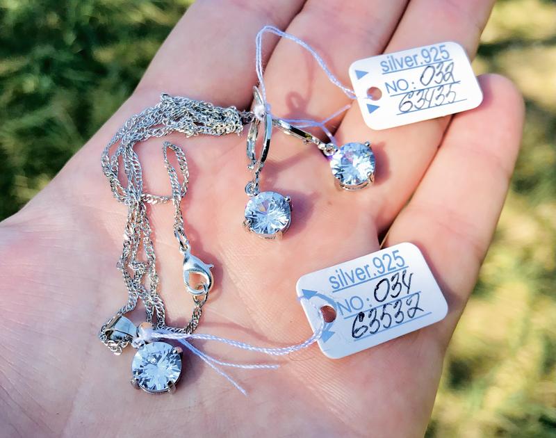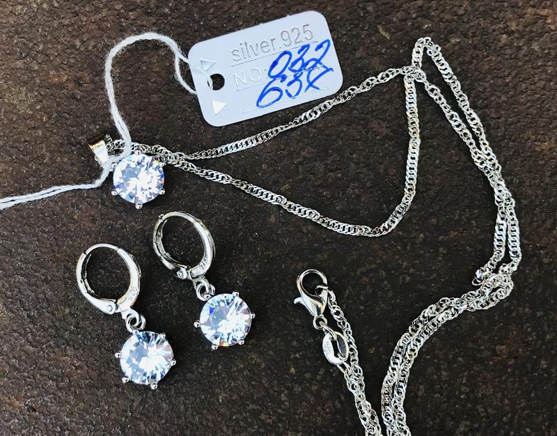 Ціна за комплект! Срібний ланцюжок + кулон + сережки 925 проби. Камінчик білий!