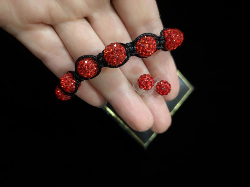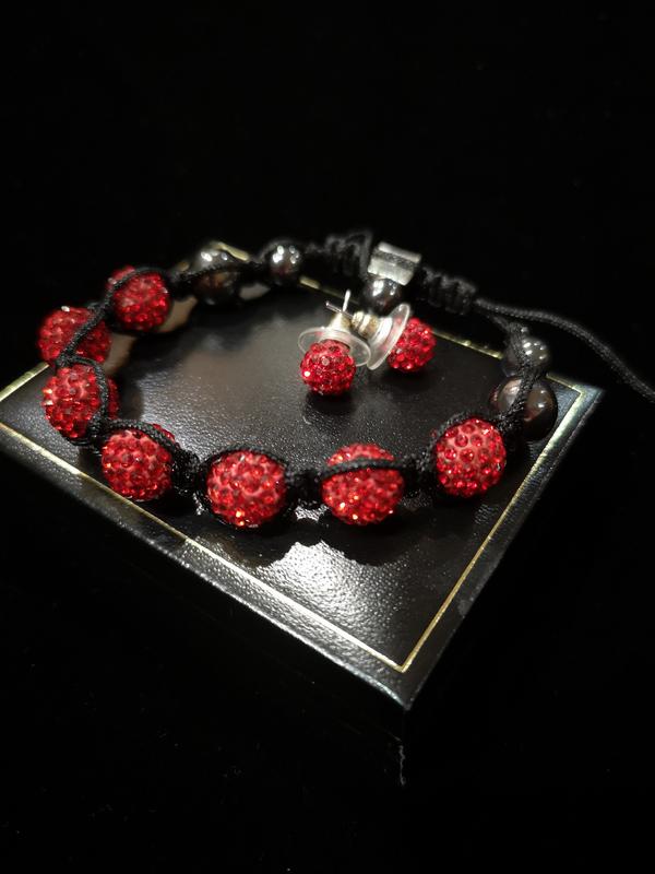 Яскравий новий набір з червоними намистинами зі стразами та гематитом. В комплект ідуть пусети. В чудовому стані, без зауважень.