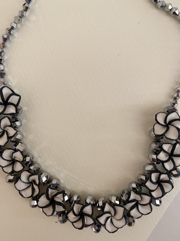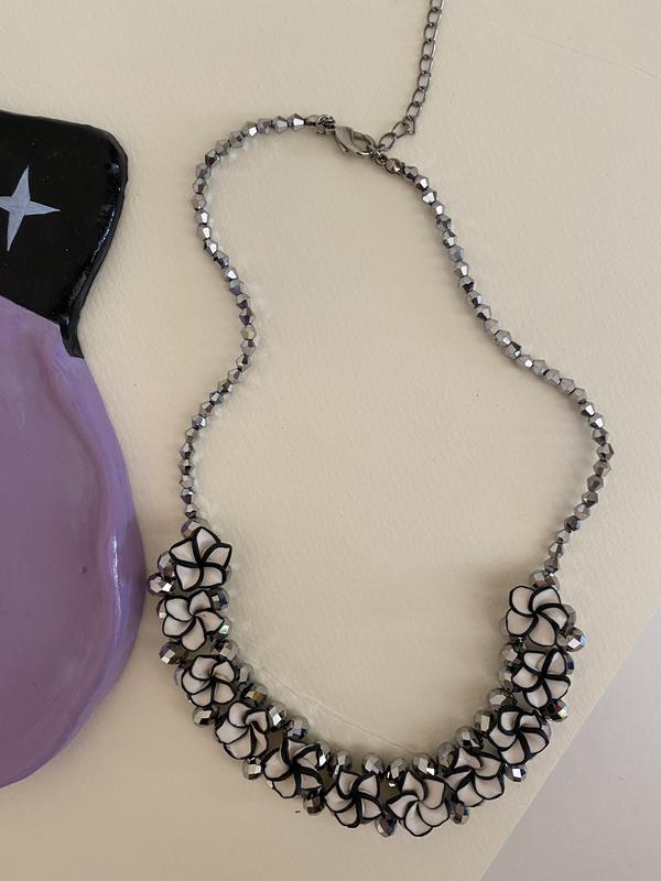 Комплект, чокер з бісеру і намистин, колечко, кільце, браслет, чорний, квіти, ромашки, набір, намисто, кольє, білий, жовтий, літо, весна