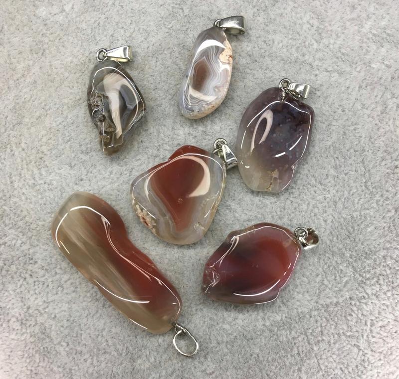 Кулон в серебристой оплетке из натурального камня дымчатый агат d-35х20мм+-