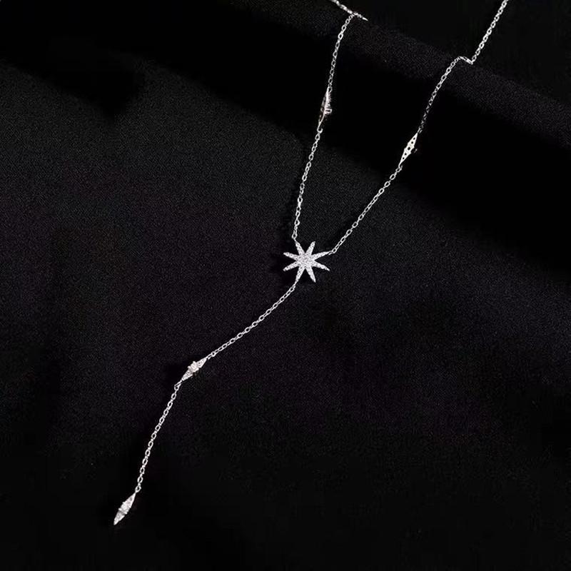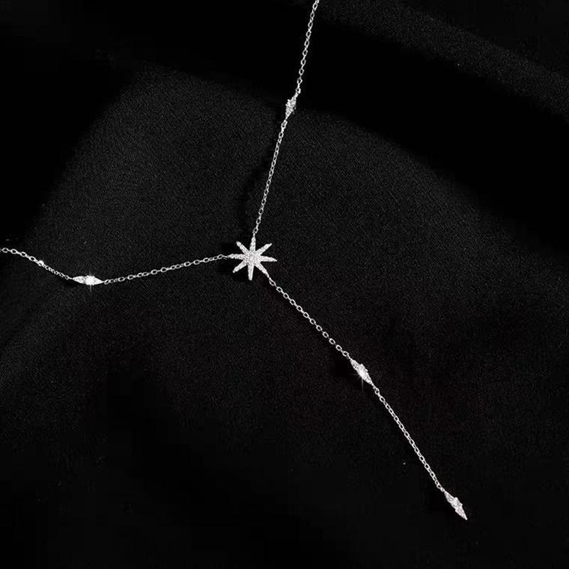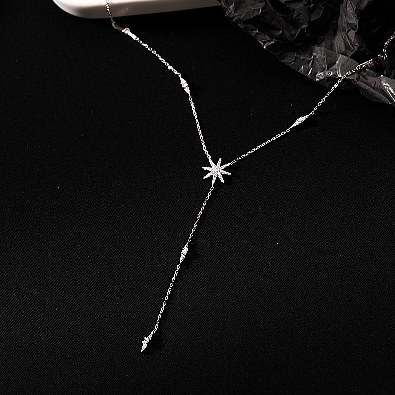 - По центру ланцюжка велика зірочка розміром 13*13 мм також від неї йде ланцюжок 9 см, на якому знаходяться дві пелюстки з фіанітами по 10 мм