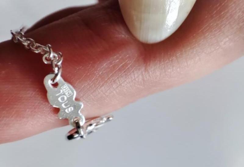 Є напис бренду Tous та проба срібла, біля застібки у формі ведмедика.