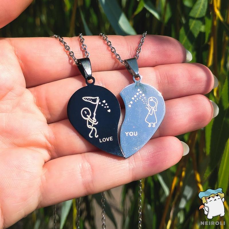 Кулон парний для закоханих "Love you". Ціна за 1 пару. На ланцюжку Ціна за 1 пару. Розмір половинки підвіски 1,6*3 см. Довжина ланцюжка 52 см (Необхідну довжину ланцюга Ви можете вказати в коментарях до замовлення або ланцюг замінити на шнурок, на вибір) Фото вживую. Фотографії захищені авторським правом Колір — срібло та графіт, матеріал кулонів — неіржавка сталь, ланцюжок — біжутерія, сплав металів
