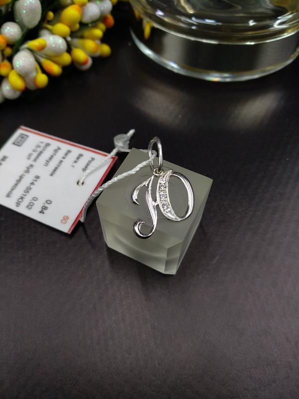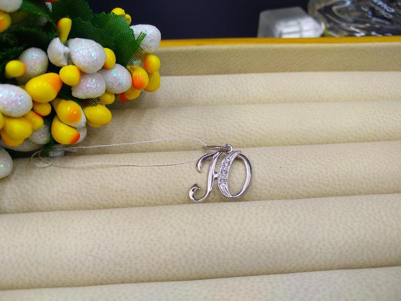 Срібний кулон підвіска арт.814-551юр вага 0,84г., вага вставки - 0,05 (1,5-3шт) фіаніт (куб.цирконій) довжина кулона 19мм, довжина букви 14мм, ширина букви 13-14мм., родований