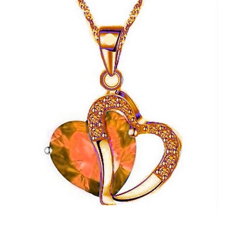 Підвіска-кулон "Закоханість", код моделі - БеСц комплект - ланцюжок + подвесочка на шию у вигляді серця колір каменю: їсти з чорним, синім, червоним, блакитним, жовтим, бурштиновим і ніжно-смарагдовим камінцем + кристальні стрази