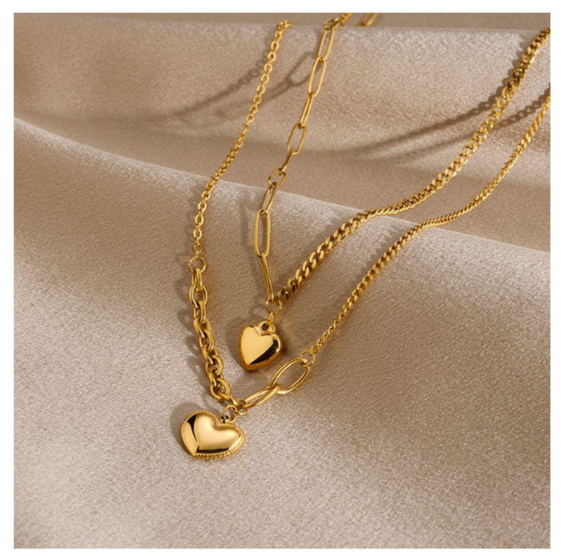 Подвійне кольє серця, золота підвіска, ланцюг