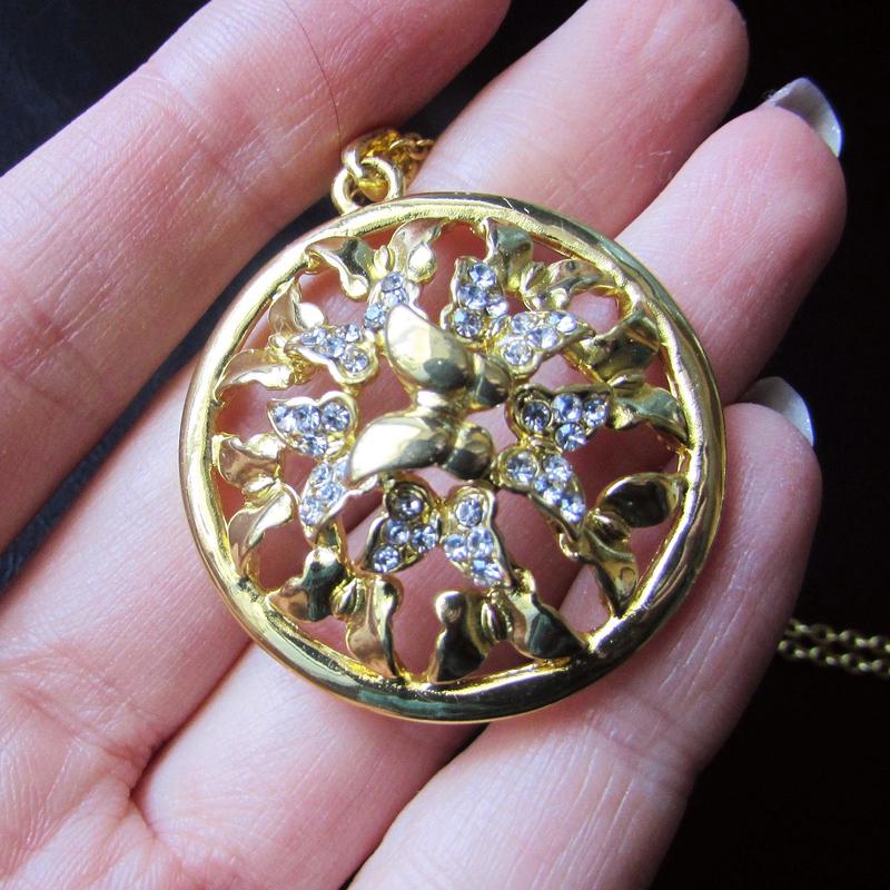 Обворожительного дизайна позолоченный кулон на цепи в стразах бабочки - красивое украшение для Вас!