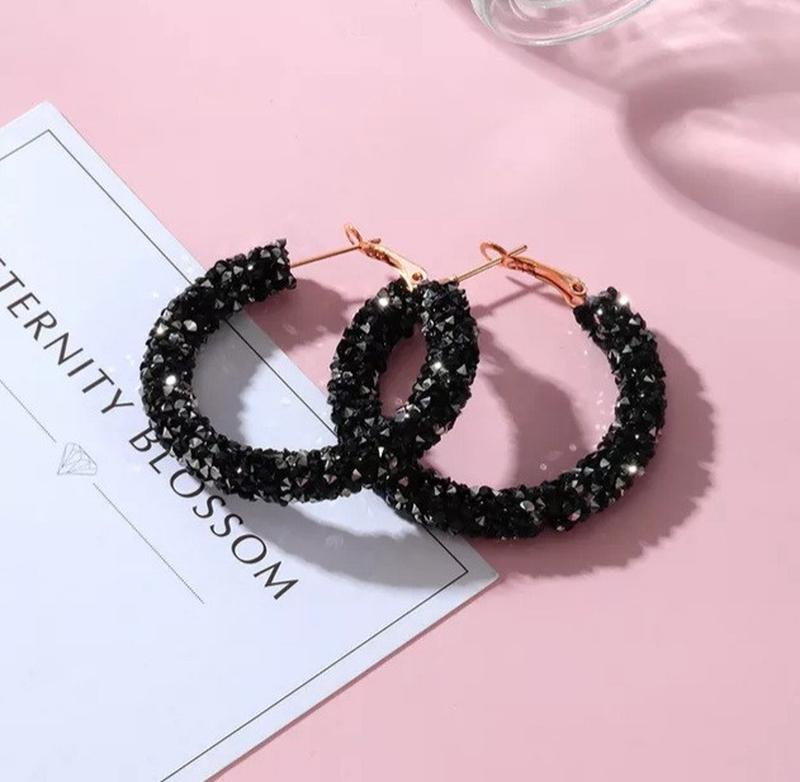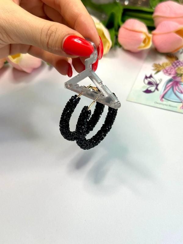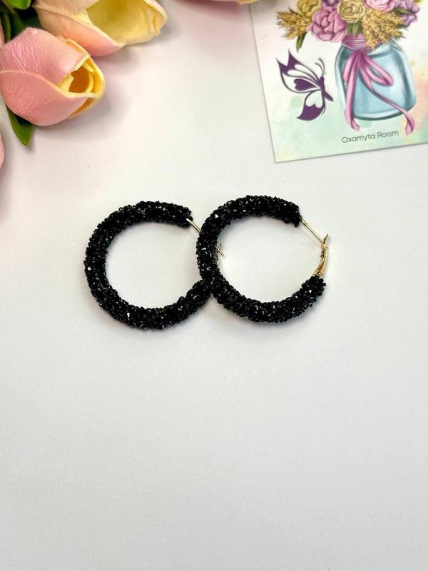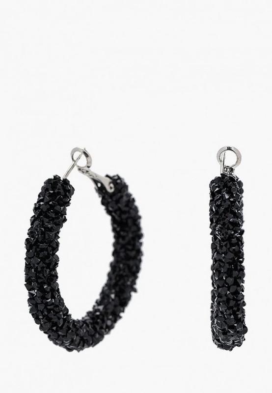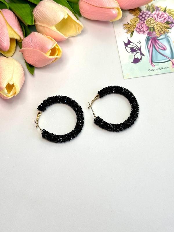 Сережки жіночі кільця зі стразами круглий колір чорний
