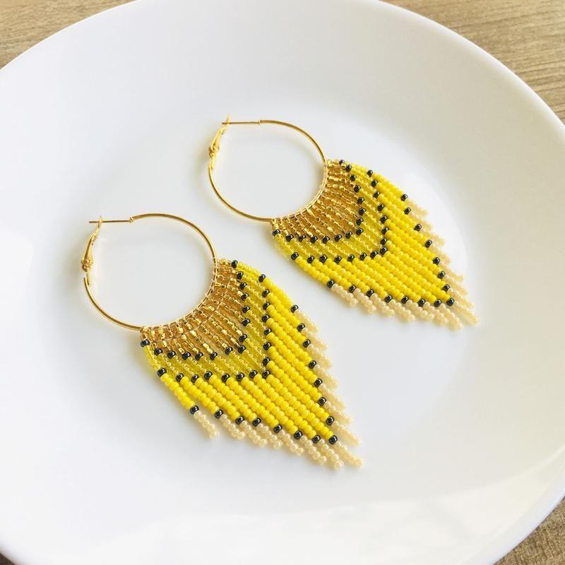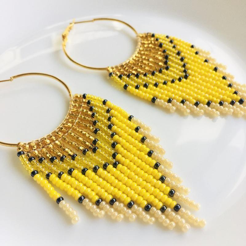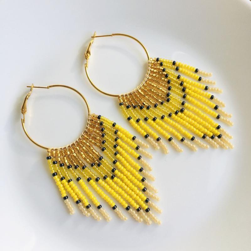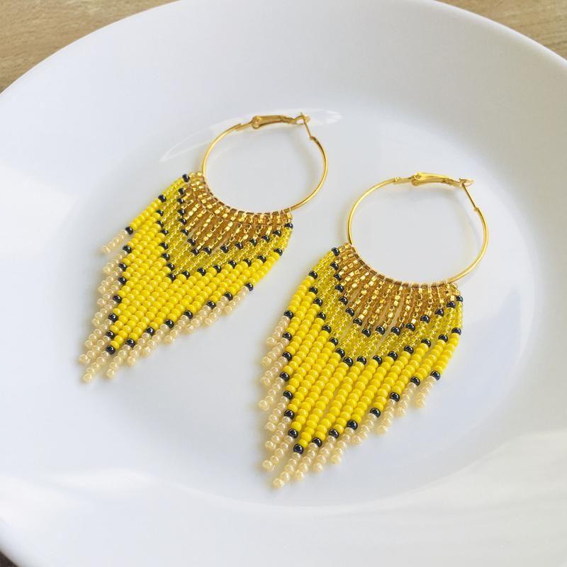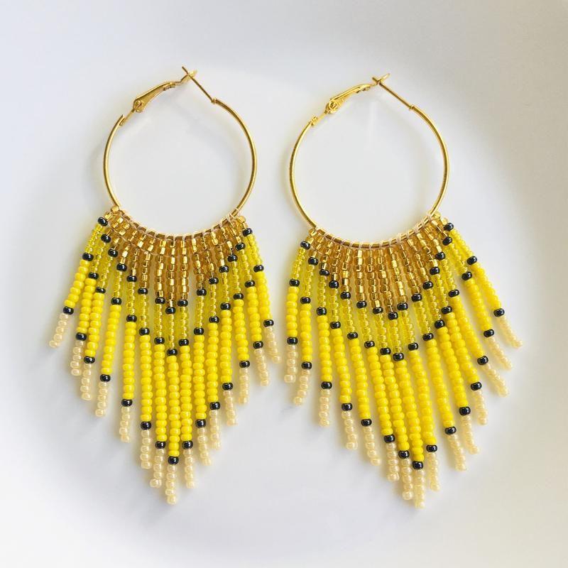 Ці довгі сережки з бахромою з бісеру створені, щоб дарувати літній настрій. Такі сонячні бісерні сережки стануть родзинкою будь-якого образу і сподобаються тим, хто віддає перевагу об'ємним і яскравим прикрасам.