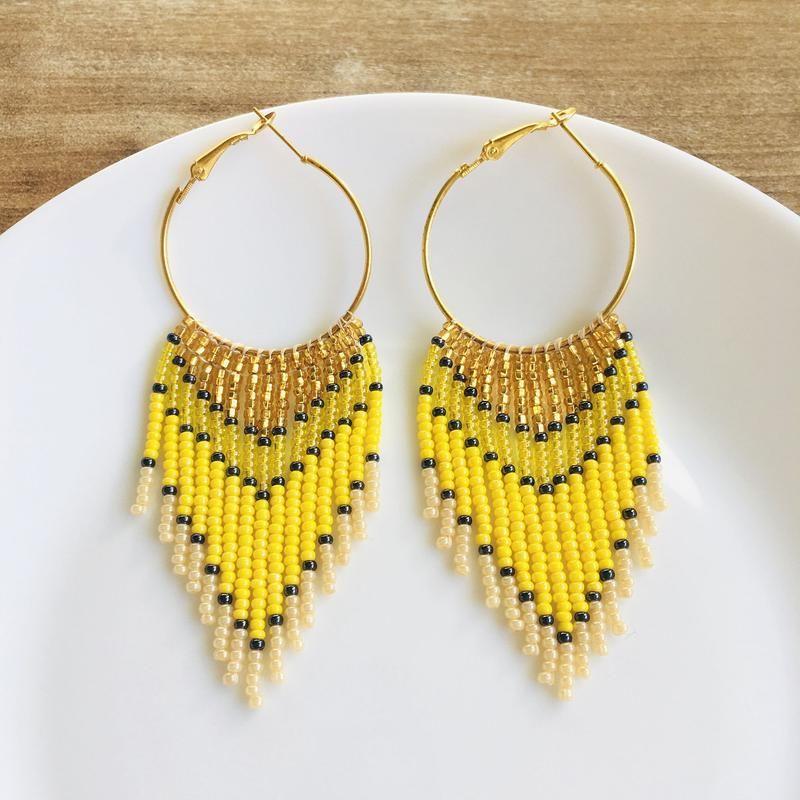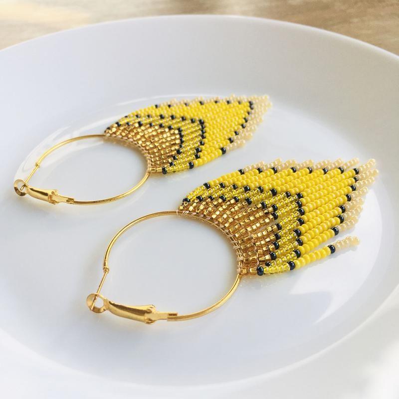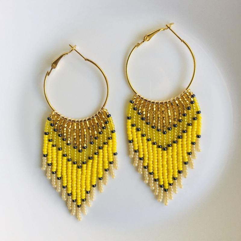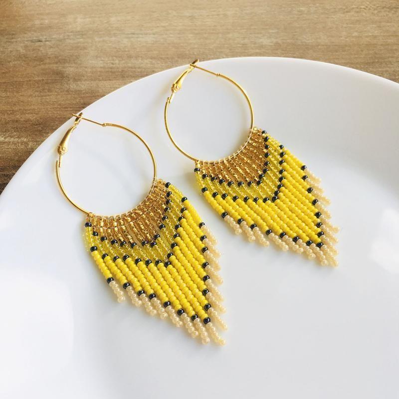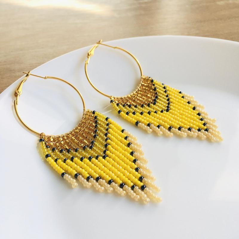 Ці довгі сережки з бахромою з бісеру створені, щоб дарувати літній настрій. Такі сонячні бісерні сережки стануть родзинкою будь-якого образу і сподобаються тим, хто віддає перевагу об'ємним і яскравим прикрасам.