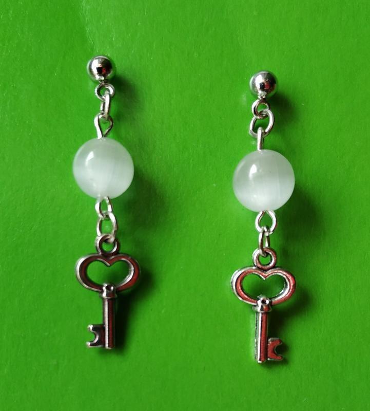 Сережки – пуссети (нержавіюча сталь). Котяче око + ключик.