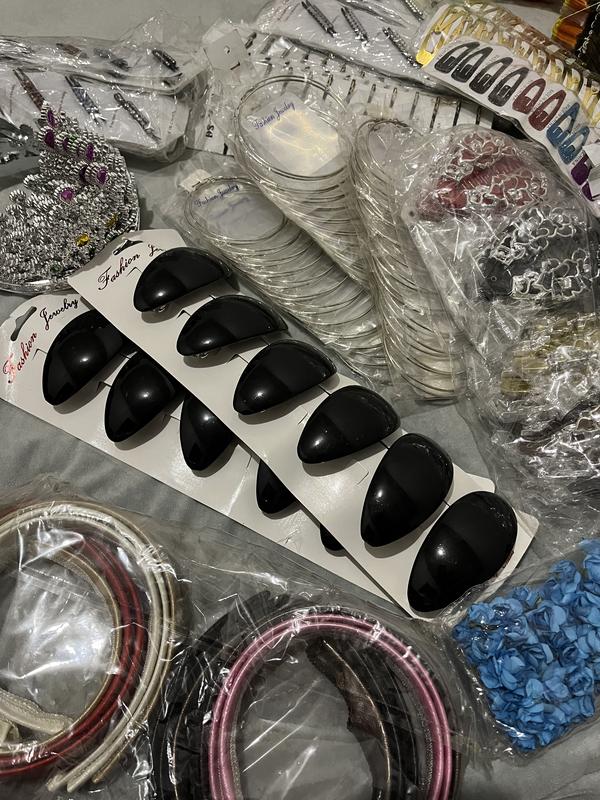 Лот аксесуарів, різних дрібничок, сережки, браслети, свічки, ризинки для волосся, обручі, крабики, заколки