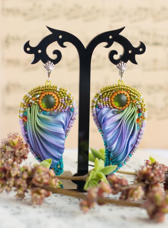 Яркие,объёмные,невесомые дизайнерские серьги из натурального шелка🍃 (тонированого вручную)и японского жемчуга напоминают богатую палитру окраса павлина-сочетание нескольких оттенков, которые характерны для перьев павлина: фиолетовый, сиреневый, синий, бирюзовый, белый, зелёный никого не оставят равнодушными,и определённо будут привлекать к себе внимание своей изысканностью,утончённостью!!!🥰 Уже который год серьгам отводится едва ли не важнейшая роль. Самыми модными серьгами этого года будут-серьги больших размеров и овальных форм!!! Данный аксессуар послужит главным акцентом вашего образа!!!👸 Выполнены в единственном экземпляре!!!🙏❤ застежка-серебро 925'