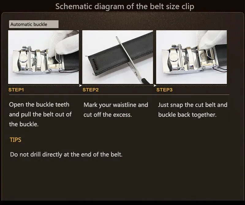 Простота у використанні - просто вставте ремінь у пряжку, що ковзає, і простягніть шкіряний ремінь, пряжка просто зафіксується автоматично. Щоб відстебнути ремінь із храповим механізмом, обережно натисніть на важіль збоку автоматичної пряжки, і замок зафіксується.