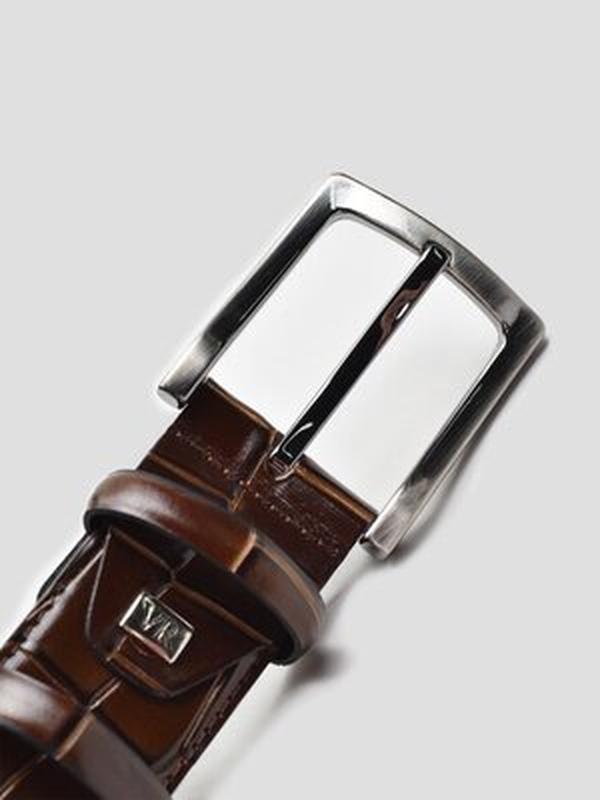 Прекрасна шкіряна модель чоловічого ременя. Цей аксесуар із натуральної шкіри коричневого кольору має чудовий вигляд з діловими костюмами, які вимагають строгого стилю.Колір темно-коричневий.